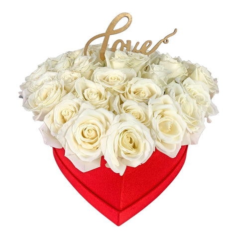 A heart shaped box full of 30 fragrant roses, carefully arranged and nestled. It's a gift that will...
