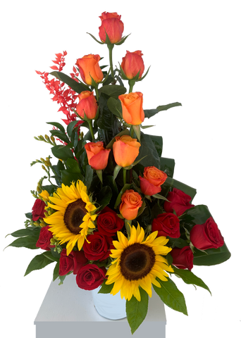 With a mix of vibrant 18 roses and sunflowers, this arrangement is perfect for any occasion. Bring a...