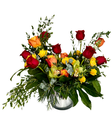 Keep your relationship fresh and fun, with this unique arrangement featuring 24 vibrant mixed roses and sage greenery...