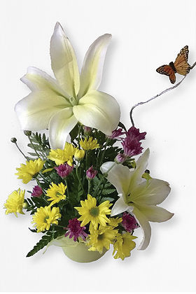 GLW047 - DAISIES AND LILIES (with Small Butterfly)