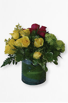 GLW057 - RED AND YELLOW ROSES, HYDRANGEAS